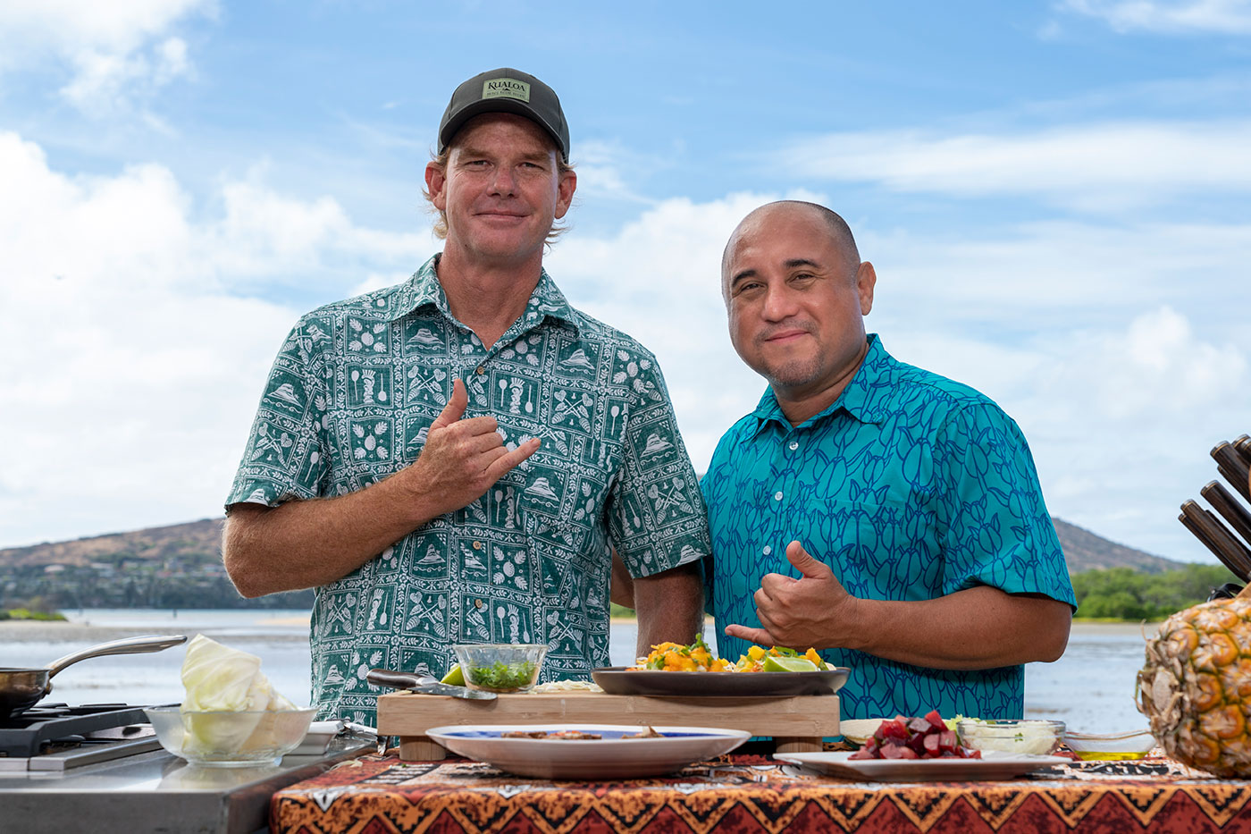 Taylor Kellerman from Kualoa Ranch joins us this week in the CHS kitchen. He is the director of Diversified Agriculture and Land Stewardship at the ranch. He has no small task as he over sees almost 4,000 acres of livestock, aquaculture and the agriculture departments. Most people don’t realize how large of a responsibility this is. We know Kualoa Ranch as a place of scenic beauty tours and movies but there is much to take care of. Taylor has an extensive background working with Del Monte and Maui Pineapple Company before coming to the ranch. One of my favorite places to visit at Kualoa are the fish ponds and Taylor is very knowledgeable on that topic as well. This week we talk Kualoa Ranch, his responsibilities and of course, food while he shares his recipe for Shrimp Tacos with fresh fruit salsa and spiced ulu chips.