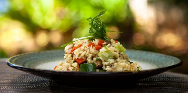 She descends from the hula lineage of Kumu Hula Leina‘ala Kalama Heine, earning the rank of Kumu Hula in 2009 upon completion of ‘uniki rites. She trained in mele oli with the late Kumu Keola Lake, Kumu Hokulani Holt, and Kumu Pualani Kanahele. Recently, she showed us a side not often revealed, her culinary skills. Here is her recipe for Olena Fried Rice.