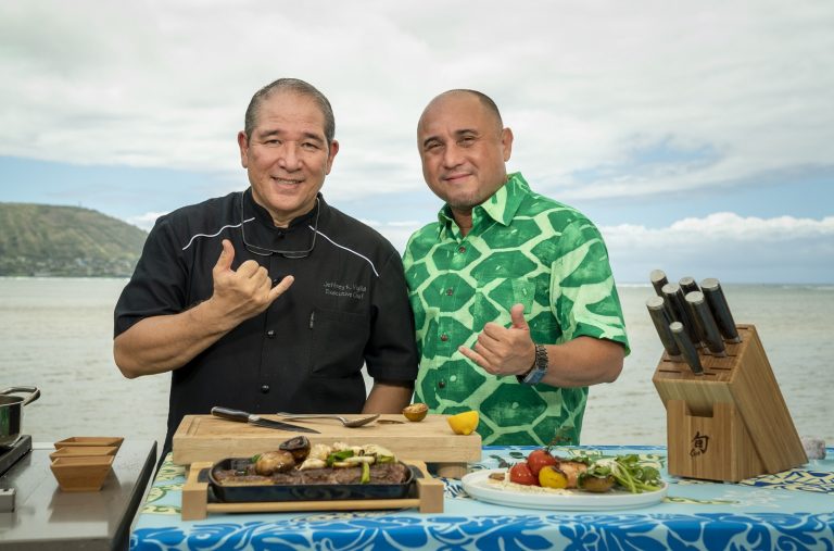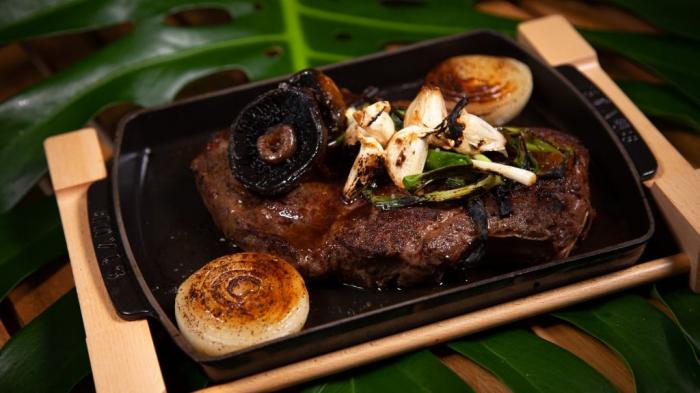 1. Add to steak pan seasame oil, Lee Kum Kee oyster sauce, Lee Kum Kee shoyu, onion, and