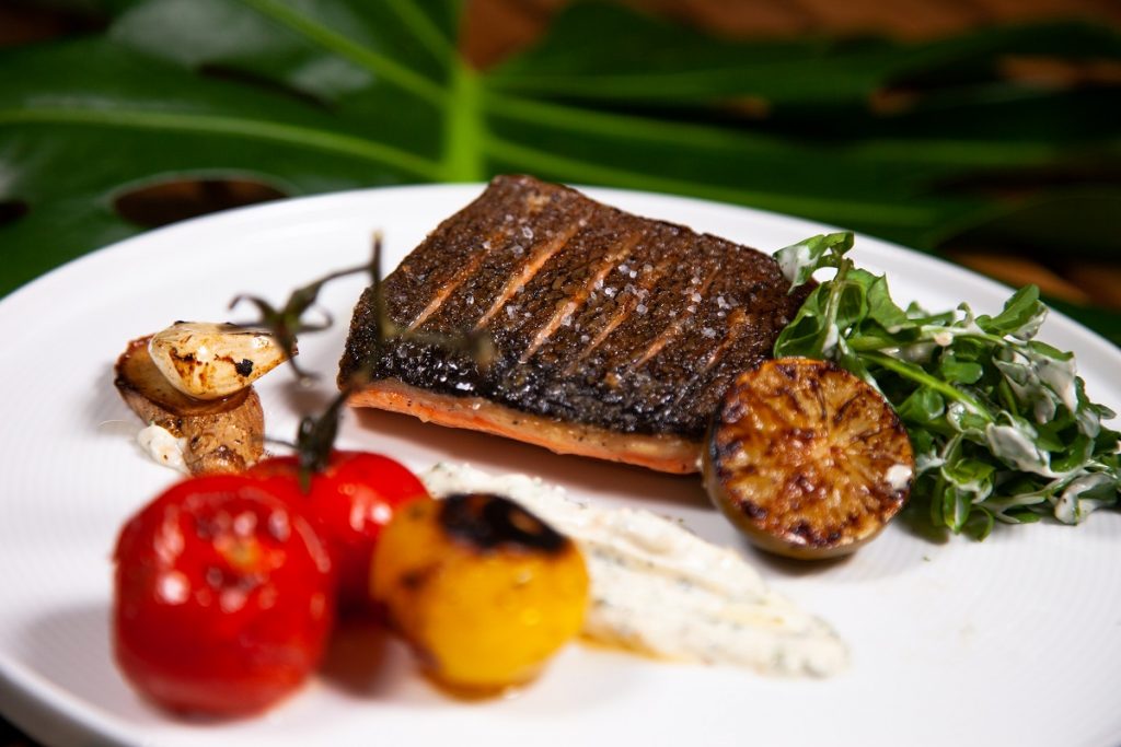 - Flip salmon and cook for two minutes.