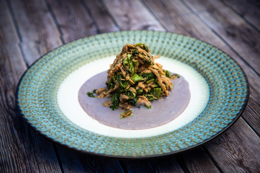 - Add canned Kalua pig to mixed greens